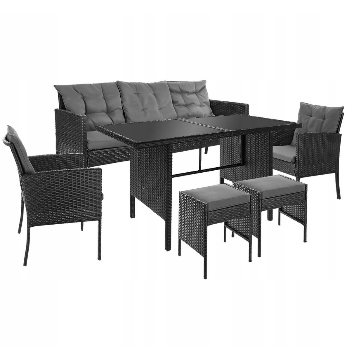 Zestaw wykonany z wysokiej jakości tworzywa – technorattanu, który cechuje się dużą wytrzymałością oraz odpornością na warunki atmosferyczne. Solidna konstrukcja stalowa sprawia, że meble są stabilne i trwałe, co gwarantuje żywotność przez wiele sezonów. Jednocześnie meble są lekkie i komfortowe. Doskonałe rozwiązanie do ogrodu, na taras lub balkon. Komplet składa się z kilku różnych elementów, dzięki czemu można je łatwo przemieszczać.